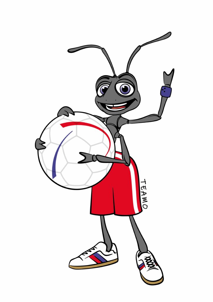 TEAMO ist das Maskottchen unserer Animation (U7, U9, U11) und verkörpert alles, was Ameisen und Handball gemeinsam haben: Teamwork, Ausdauer, klare Strukturen und den Willen, gemeinsam Ziele zu erreichen. Er erinnert uns daran, dass jede*r im Team wichtig ist – egal, ob gross oder klein.